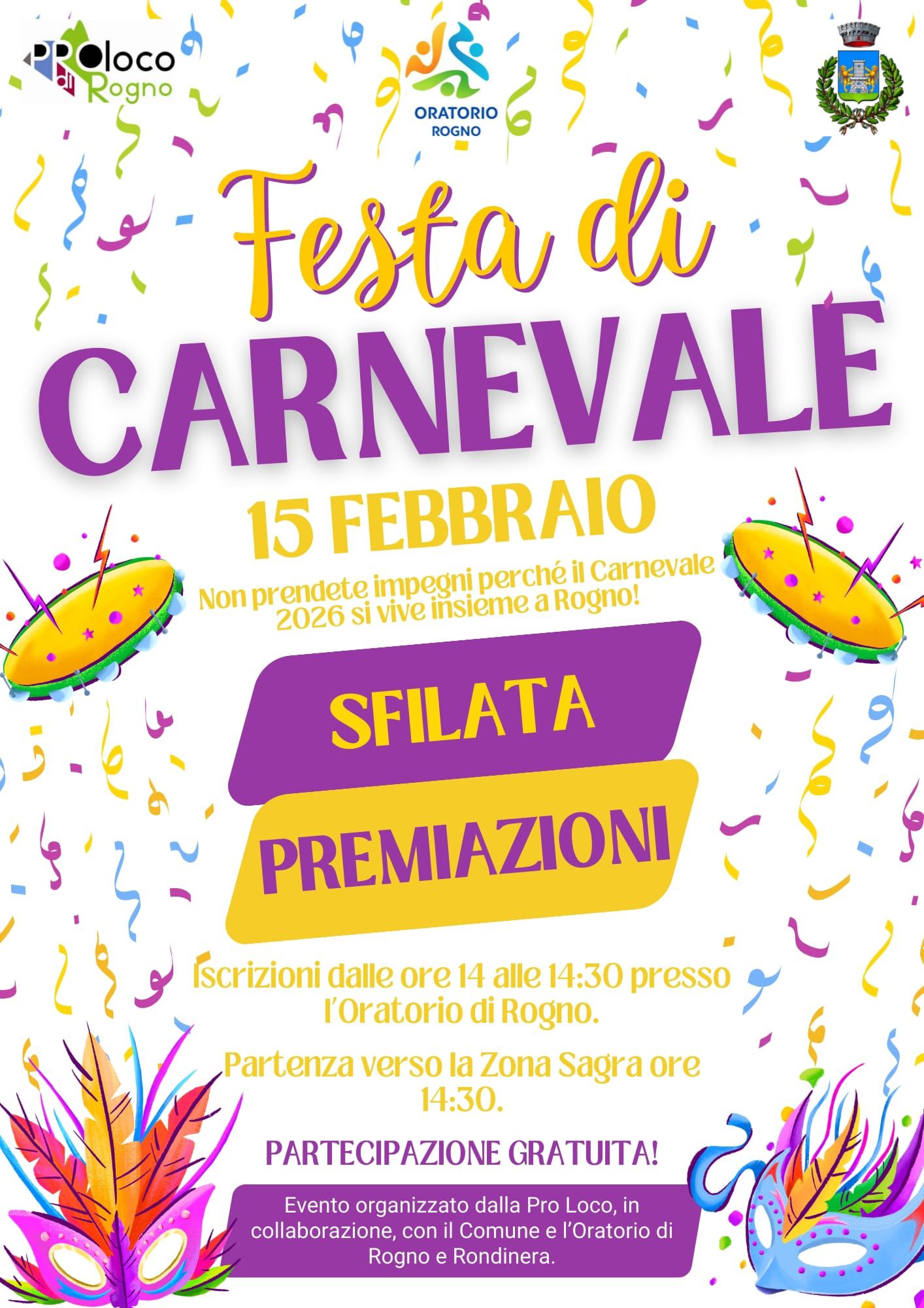 Iscrizioni dalle 14:00 alle 14:30 presso l’Oratorio di Rogno. Partenza della sfilata alle 14:30 verso la Zona Sagra.